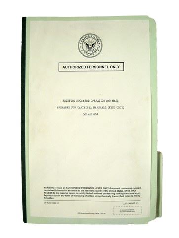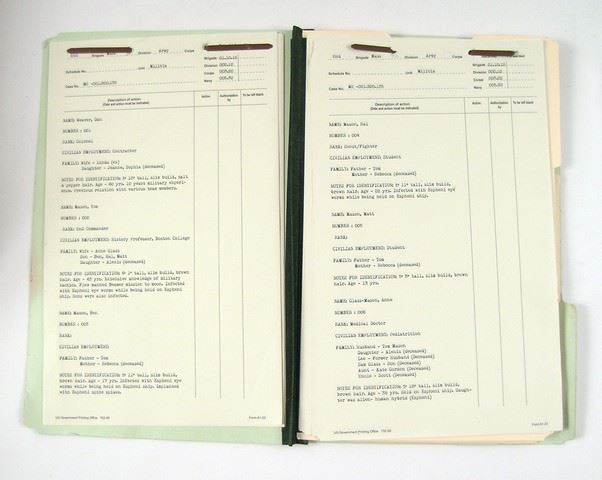 Season 5, Episode 7 - U.S. Navy "Authorized Personnel Only" Briefing Document with U.S. Navy seal, prepared for Captain Katie Marshall (Melora Hardin). Classified as an "Eyes Only" document, this dossier lists brief background information on the 2nd Mass Army personnel, including Colonel Dan Weaver (Will Patton) and the entire Mason family. Approx. 15" x 10".