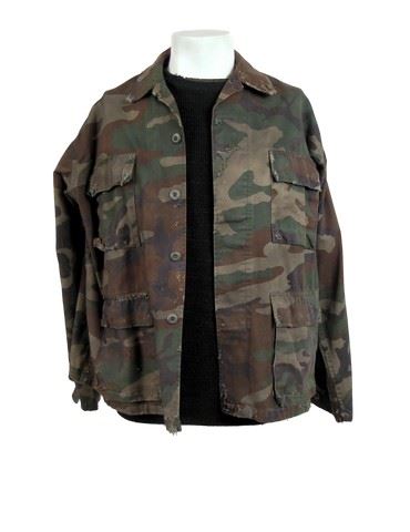 Colonel Dan Weaver's (Will Patton) "stunt" outfit worn by Will Patton in Season 5, Episodes 4 & 5 during stunt sequences. Will Patton, like his character Colonel Weaver, understands the logistics of wearing duplicate outfits for stunt sequences. This "stunt" military outfit embodies the ace field officer, whose mettle leads the 2nd Mass with cunning and honor. His green camouflage shirt, blue ribbed-knit cotton "Paul Smith" sweater, and green crewneck "Vince" t-shirt speak volumes about his no-nonsense style. Colonel Weaver's outfit has been meticulously "distressed" to show