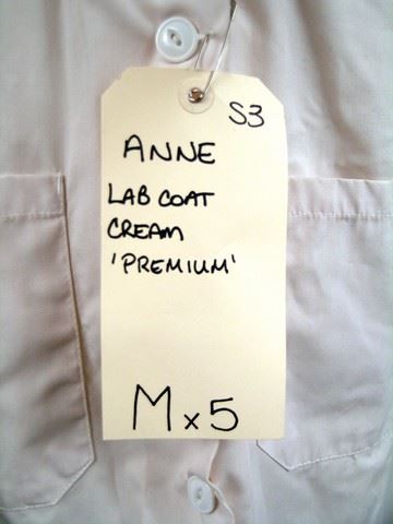 Anne Glass-Mason's (Moon Bloodgood) screen worn outfit in the Season 5, Episode 7. This white premium lab coat is worn by Anne at the Naval infirmary. Includes wardrobe tag.