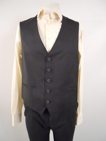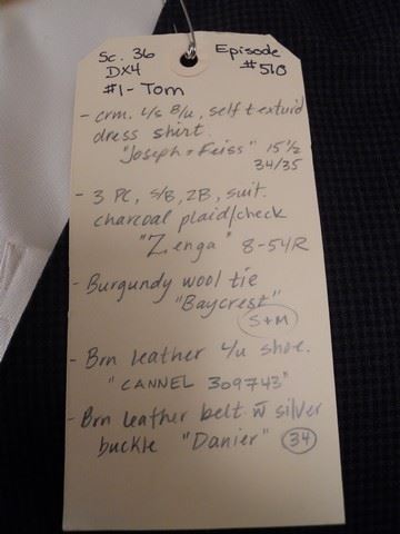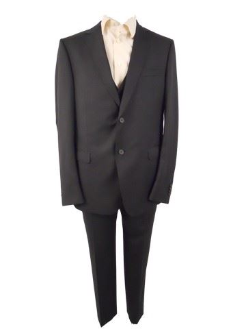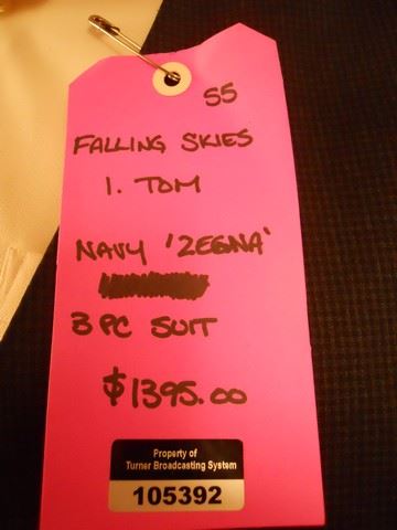 SPOILER ALERT! Tom Mason's (Noah Wyle) screen worn outfit in the Series Finale (Season 5, Episode 10). Finally, Tom ditches the urban hunter look and embraces his fashionista professor that Dr. Anne Glass-Mason (Moon Bloodgood) fell in love with, in this charcoal colored (naturally), subtly patterned Ermenegildo Zegna suit that only a rail-thin, post-apocalyptic leader could pull off. Set off by a creamy Joseph & Feiss dress shirt, this spectacular look almost makes you forget that no dress shoes or tie are included. True to his code, Tom does wear his signature brown leather belt by "Danier" with rectangular silver buckle. Includes wardrobe tag.