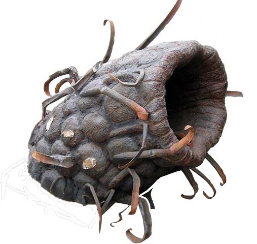Season 5, Episode 3 (21:25 minutes) - Just before her fatal misstep, Sara (Mira Sorvino) discovers this burned-to-a-crisp Espheni artichoke bomb while on a reconnaissance mission with John Pope (Colin Cunningham) to gather intelligence on Espheni forces. Black and orange colors. Made of hard foam resin. Approx. 83" x 42".