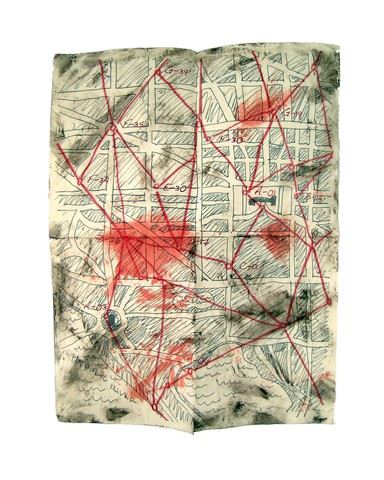 SPOILER ALERT! Season 5, Episode 10 (Series Finale) - Lieutenant Demarcus Wolf's (Daren A. Herbert) creased and worn hand-drawn map, in red and green ink, displaying sectors along the Potomac River. Red and green splotches on map added for realism, indicating heavy use. Approx. 11" x 8 1/2".