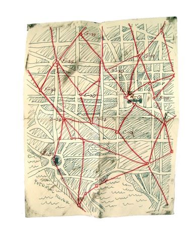 SPOILER ALERT! Season 5, Episode 10 (Series Finale) - Lieutenant Demarcus Wolf's (Daren A. Herbert) creased and worn hand-drawn map, in red and green ink, displaying sectors along the Potomac River. Minimal splotches appear on map to indicate moderate use. Approx. 11" x 8 1/2".