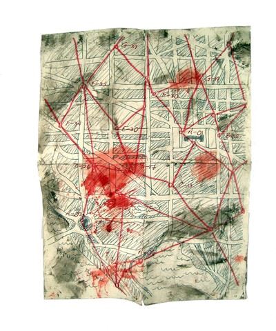 SPOILER ALERT! Season 5, Episode 10 (Series Finale) - Lieutenant Demarcus Wolf's (Daren A. Herbert) creased and worn hand-drawn map, in red and green ink, displaying sectors along the Potomac River. Red and green splotches on map added for realism, indicating heavy use. Approx. 11" x 8 1/2".