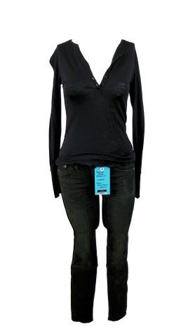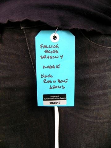 Maggie's (Sarah Carter) screen worn outfit in Season 5, Episodes 7, 8, & 9. Moderate wear, with specific markings on the pants. Maggie may spend her days torpedoing Mega Mechs or fighting off Hal's (Drew Roy) nefarious ex-girlfriends with omnipotent powers, but she also knows how to kick back in a casual motif of black long-sleeved henley shirt with buttons along the collar, and classic "Rag & Bone" skinny jeans in navy blue with black leather piping. Maggie's outfit has been generously "distressed" to show moderate wear. Her pants have three marks on the right thigh, to coincide with the storyline. Includes wardrobe tag with Turner Broadcasting System sticker #103417.