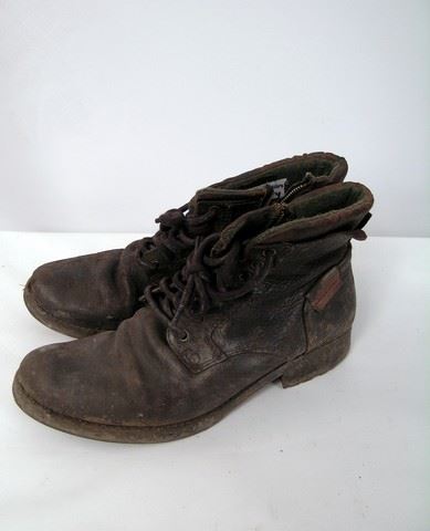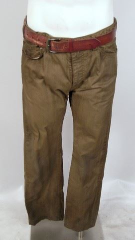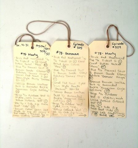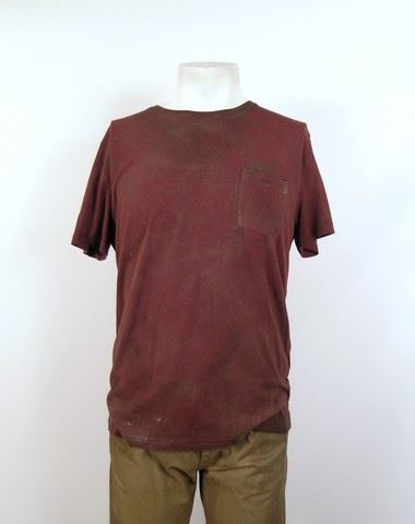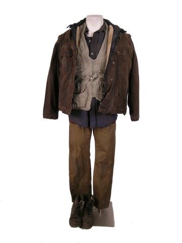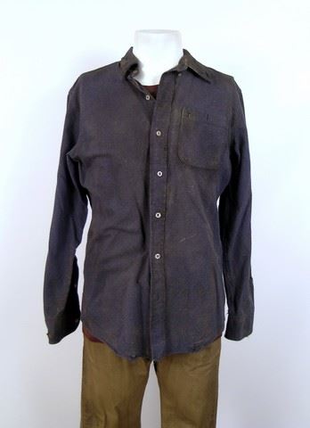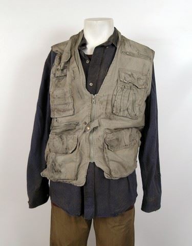 SPOILER ALERT! Season 5, Episodes 5 through 10 (Series Finale) - Marty's (Todd Weeks) screen worn, distressed brown cotton with zip off arms and black hoody and placket zipper front "Dakota" jacket, beige zipper front with pockets and mesh lining "Rothco" outback vest, blue flannel with brown suede elbow patches "Denver Hayes" shirt, brick red short sleeve crew neck "Mexx" t-shirt, brown leather "American Eagle" belt, camel flat front five pocket jean style "Dockers" pants, and black lace up the front with side zipper "Aldo" boots. Includes wardrobe tags.