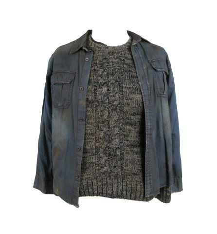 Matt Mason's (Maxim Knight) screen worn outfit in Season 5, Episodes 1 through 4. In another homage to the layered look, Matt wears his light blue long-sleeved "Tommy Hilfiger" shirt with two chest pockets over his grey wool long-sleeved "Joe" sweater. Matt's outfit has been generously "distressed" with dirt to show moderate wear in a post-laundromat world.