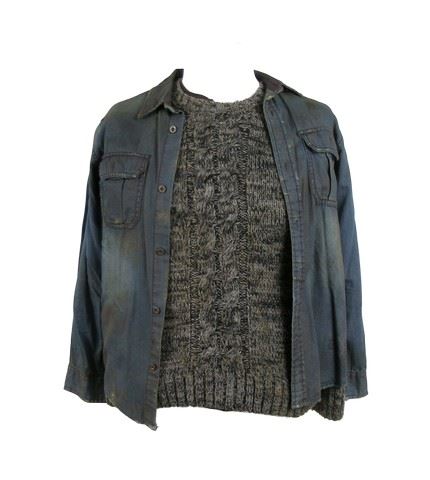 Matt Mason's (Maxim Knight) screen worn outfit in Season 5, Episodes 1 through 4. Moderate wear. In another homage to the layered look, Matt wears his light blue long-sleeved "Tommy Hilfiger" shirt with two chest pockets over his grey wool long-sleeved "Joe" sweater and black waffle-weave "Old Navy" shirt. Matt's outfit has been generously "distressed" with dirt to show moderate wear in a post-laundromat world.