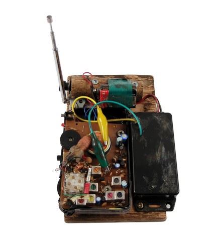 Season 5, Episode 1 (25:45 minutes) - Tom Mason (Noah Wyle) uses fallen militia member Scotty (Rob Hayter) as bait to lure in a pack of attacking Skitters, placing two bombs with Scotty's body. The plan works, as Skitters swarm Scotty, until the detonator switch fails. However, Colonel Dan Weaver's (Will Patton) splinter group arrives to save the day, when Sara (Mira Sorvino) shoots the bombs to activate them. All parts of the rigged detonator rest atop a small plank of wood, including the antenna, wiring, battery, and components. Approx. 8" x 5 1/2".