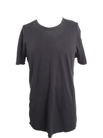 Tom Mason's (Noah Wyle) stunt double screen worn shirt in Season 5, Episodes 6, 8, and 9. Moderate wear. The ever-diligent stunt double keeps Tom's urban chic reputation in check, wearing Tom's uber-casual "American Apparel" black waffle shirt just as the post-apocalyptic Professor would. Tom's black shirt is shown here at its cleaner, pre-pilling state.