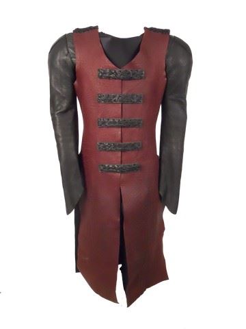 Season 5 - This superb Volm sculpted chest piece and leather outfit combine the best worlds of Volm strength and fashion. The chest piece attaches in the back with velcro, and is made of plastic. The next layer of this ensemble is a stretchy undergarment with padded rubber shoulders. Lastly, the long burgundy tunic snaps in the front and is of a sleek, understated fashion so familiar to Volms.