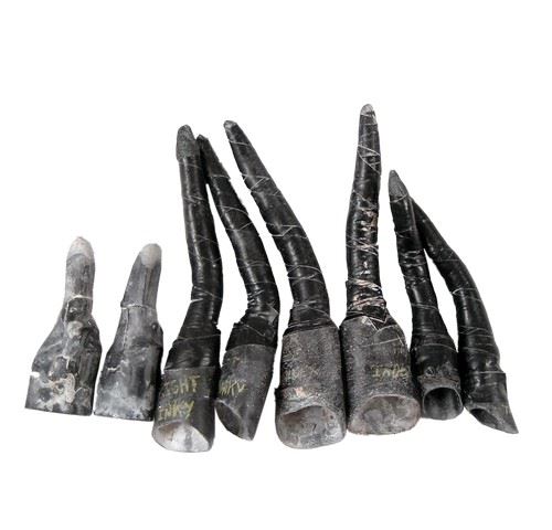 This set of 8 tapered Skitter finger extensions was used during stunt sequences in the filming of "Falling Skies." Since Skitters in close-ups are all real and possess distinctive movements, these various finger extensions were used to individualize the alien creature. Animatronic-generated facial expressions give Skitters personality and emotions that remind us they had loving families in their own cultures before being transformed against their will by the ruthless Esphenis. Thanks to the special effects crew, the Skitter faces and bodies are so realistic that they could start their own cult following (as long as the Overlords don’t get wind of it). Made of metal and rubber. Eight finger extensions of various sizes, the longest being approx 9" long.