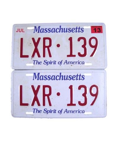 Tom Mason's (Noah Wyle) Massachusetts license plates (LXR 139). Made of plastic.