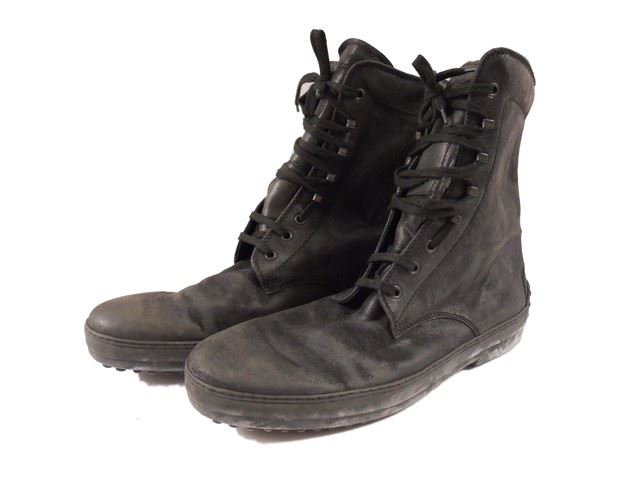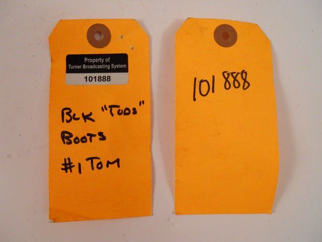 Tom Mason's (Noah Wyle) screen worn black leather "Tods" lace-up boots. Minimally "distressed" for production. Includes 2 wardrobe tags, one with Turner Broadcasting System sticker #101888.