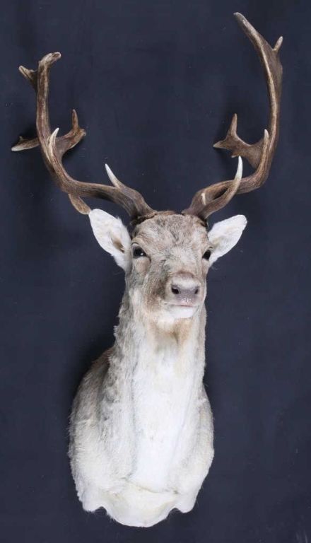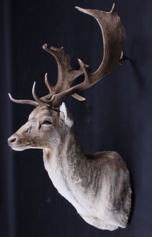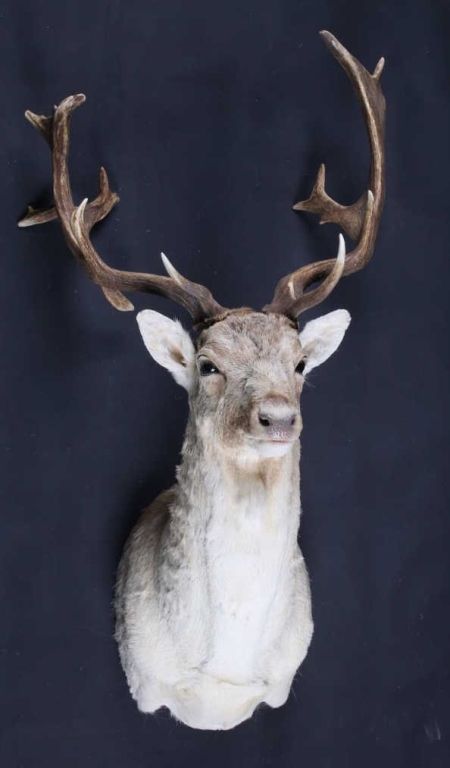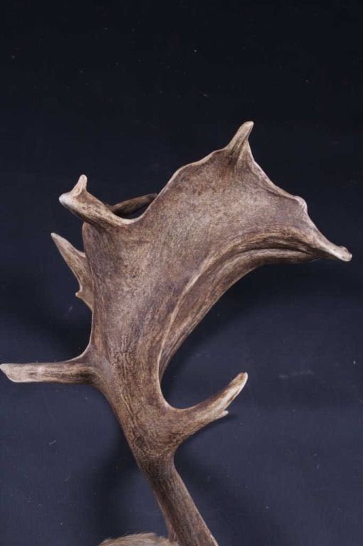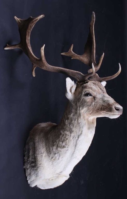 This is a large Fallow Deer shoulder mount taken from New Zealand. The mount shows removable horns making it easy to hang and ship. The antlers have great coloring and the mount shows good condition. Shipping Crate will be 26"x20.5"x30.5" total shipping weight 70lbs Packaging $64. (2)