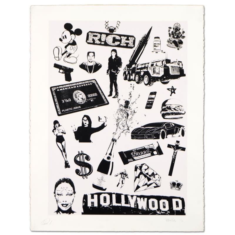 "False Idols I: Plastic Jesus" is a limited edition silkscreen on deckle edge paper numbered and hand signed by the artist. Includes Letter of Authenticity. Measures approx. Measures approx. 22" x 30" (image).