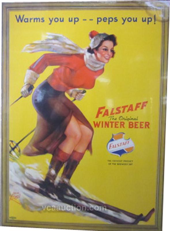 Falstaff The Original Winter Beer Paper Sign "Warms You Up - - Peps You Up!" in frame - 20" x 28"