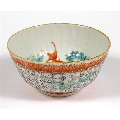Famille-Rose Bowl w/ Gold Fish and Flower, Qing Dynasty