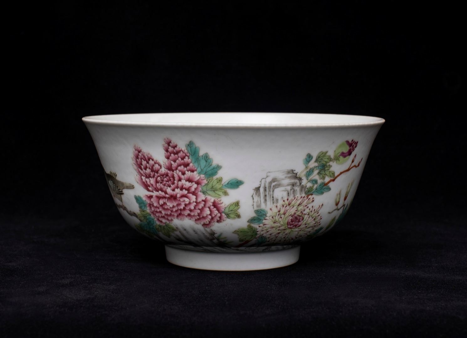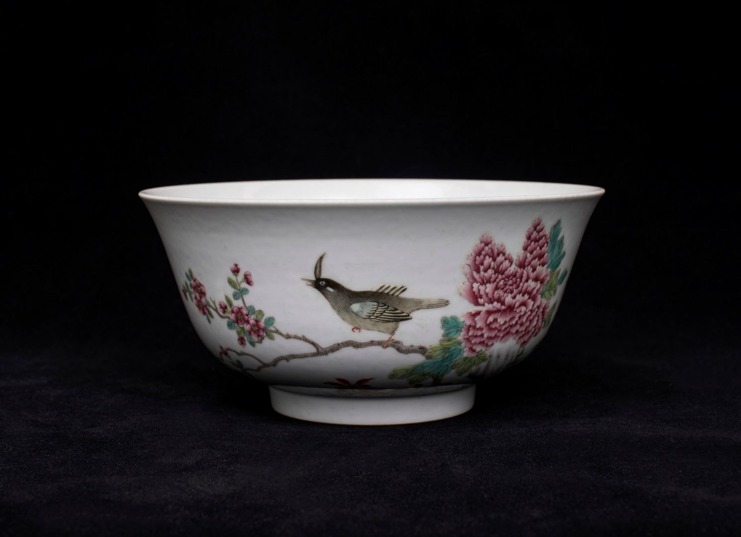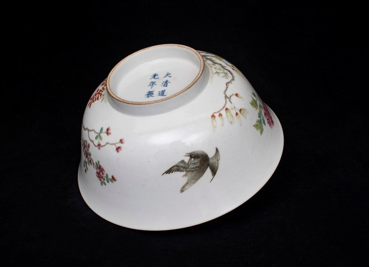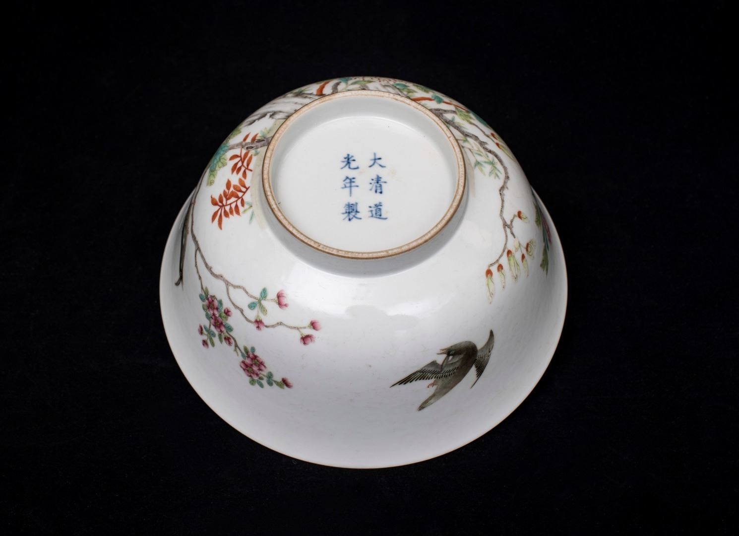 Famille Rose Floral and Bird Bowl, Daqing-Daoguang-Nianzhi Mark