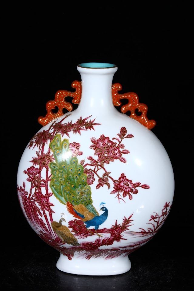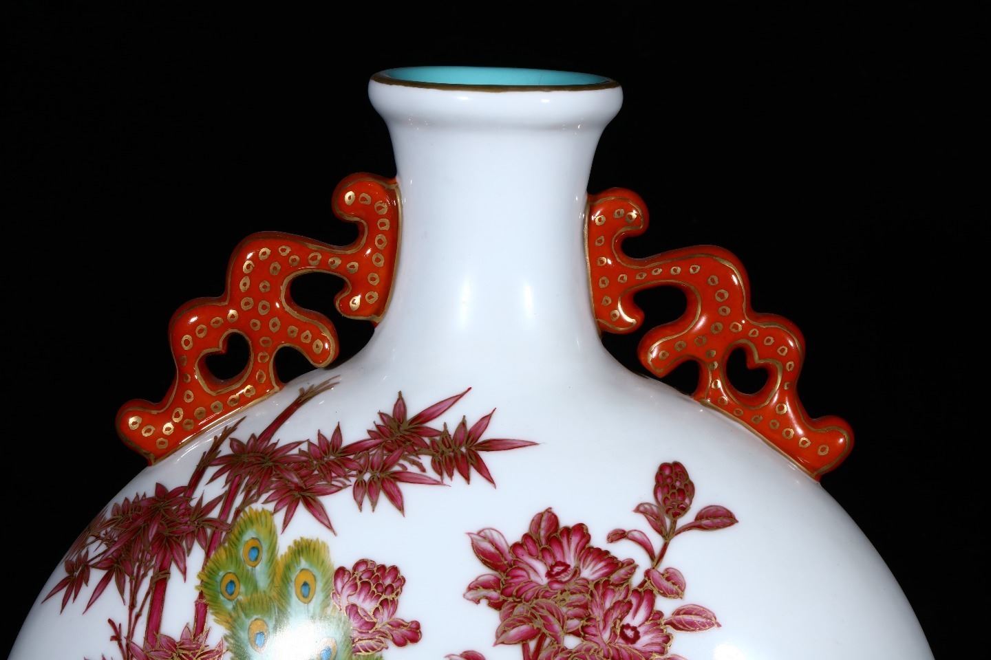 Famille Rose Gilt Oblate Vase, Daqing-Qianlong-Nianzhi Mark