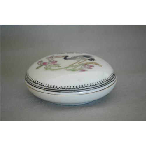 Famille rose porcelain ink box. decor with crane and flower.