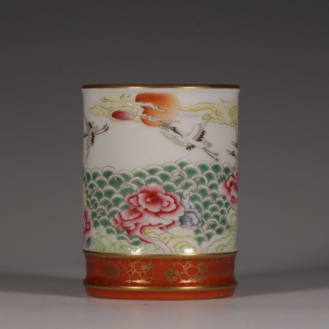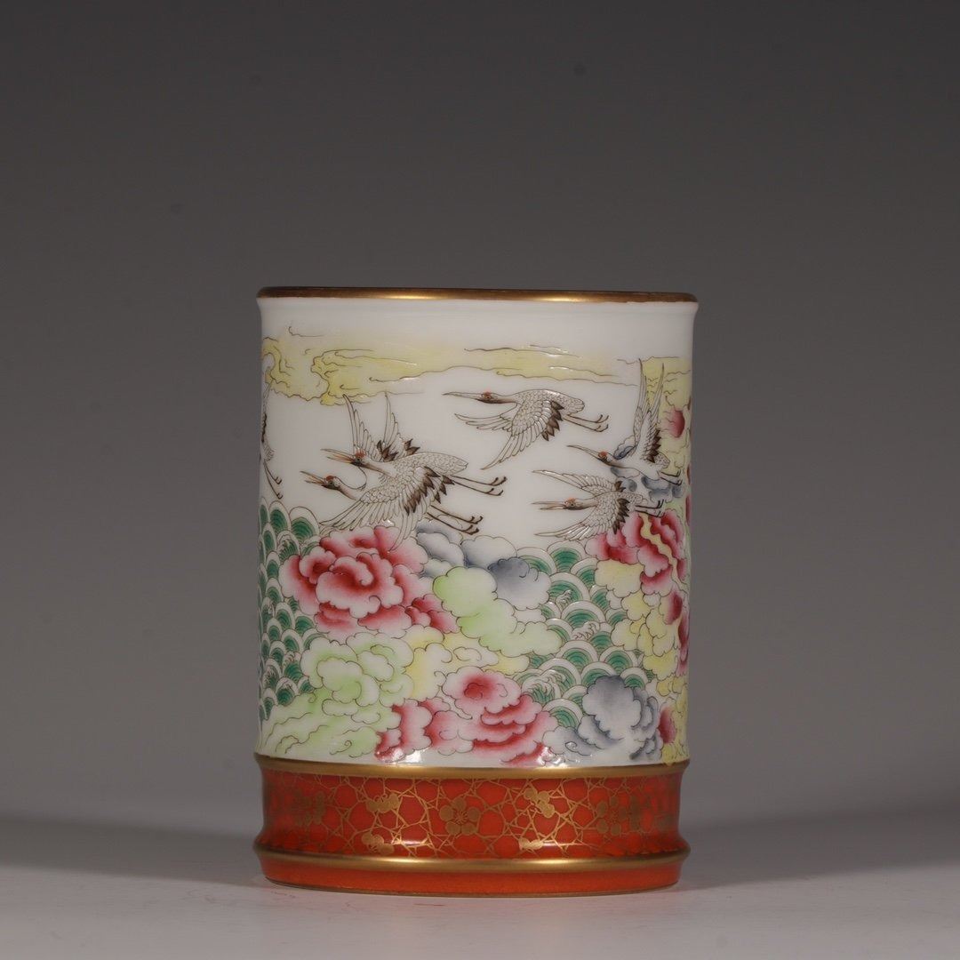 Famillie Rose Gilt Brush Pot, Daqing-Qianlong-Nianzhi Mark