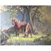 A 24x30" original acrylic on canvas by Richard Ho captures this charming equine family grazing together in Springtime.