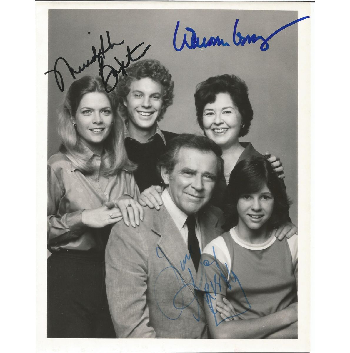 Rare one of a kind original b/w 7x9 publicity still signed by William Katt, Meredith Baxter and Kristy McNichols