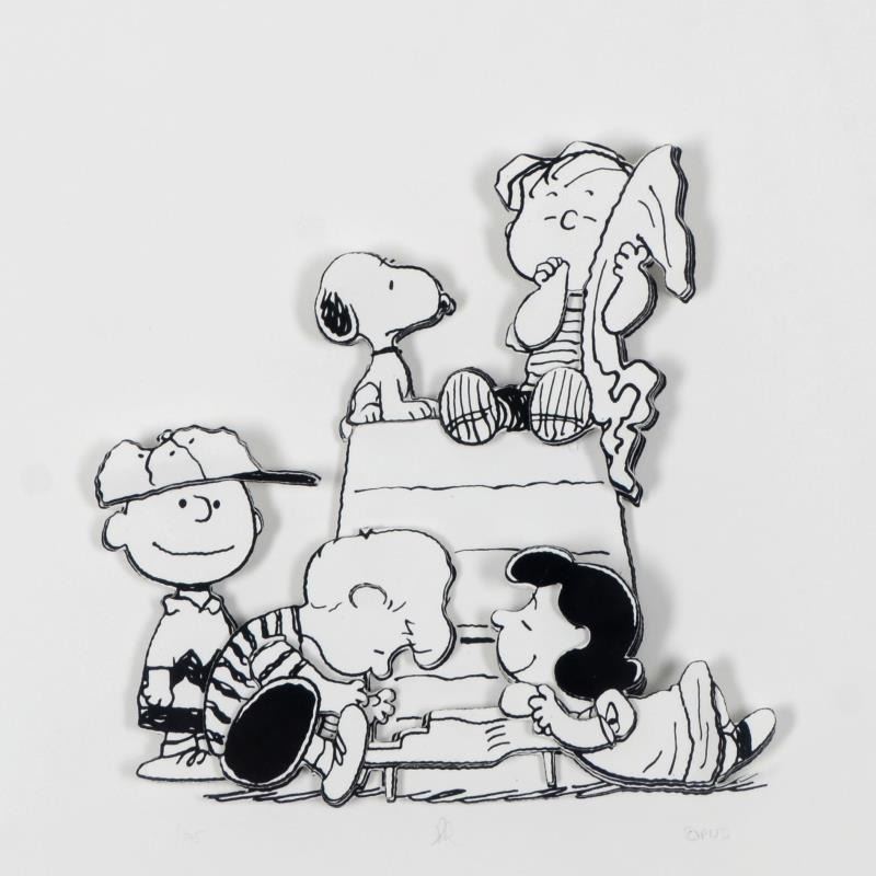Created from the original artwork archived at the studio, "Family" portrays the simple yet emotive art of Charles. M. Schulz, creator of PEANUTS. This 3D decoupage print on paper is hand numbered with Certificate of Authenticity. Measures approx. 23.5" x 15.5" (shadow box), 7" x 7" (image).