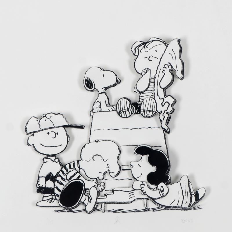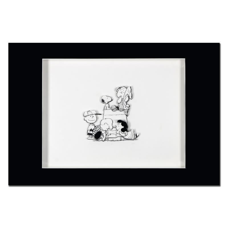 Created from the original artwork archived at the studio "Family" portrays the simple yet emotive art of Charles. M. Schulz creator of PEANUTS. This 3D decoupage print on paper is hand numbered with Certificate of Authenticity. Measures approx. 23.5" x 15.5" (shadow box) 7" x 7" (image).