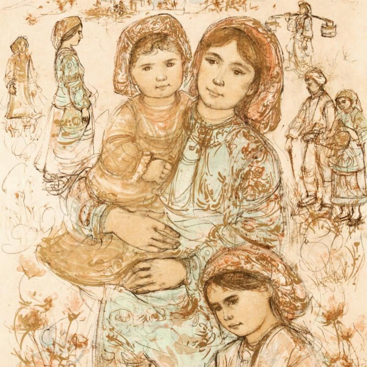 "Family in the Field" Limited Edition Lithograph by Edna Hibel (1917-2014), Numbered and Hand Signed