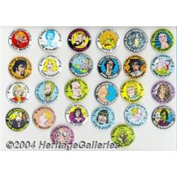 <B>Famous Cartoonist Buttons Group of 52 (Pinback Jack, 1975).</B></I> Pinback Jack issued this "Famous Cartoonist Series" of self-portrait buttons back in 1975. All of the participating cartoonists were alive, and created self-portraits specifically for this button set. The buttons were distributed by Krupp Comic Works and Phil Seuling. This set was originally announced as 52 buttons, and the alphabetical numbering reflects that. However, two artists -- Neal Adams and Rick Meyerowitz -- turned in their self-portraits late, after the first 52 had already been designed. These are not included in this group. All of the color buttons in this set are metal, with clear celluloid covers, measure 2.2" in diameter, have "safety" pinbacks, and are in Excellent condition. Some of the top-notch cartoonists included are: John Stanley, Carl Barks, Richard Corben, C.C. Beck, Al Capp, Will Eisner, Will Elder, Kelly Freas, Hugh Heffner, Jay Kenney, Basil Wolverton, Harvey Kurtzman, Grim Natwick, John Severin, Gilbert Shelton, Robert Crumb, Art Spiegelman, Skip Williamson, and Gahan Wilson. <I>From the collection of Apex founder Don Donahue</B></I>. 52 items <BR><BR><B>Important notice:</B> Heritage usually auctions material at the rate of 200-250 lots per hour. On some occasions eBay Live bid software or the Internet may not be able to keep up with the pace of the auction. We recommend placing a realistic absentee bid now as insurance to avoid disappointment. Occasionally the auctioneer may eliminate or reject an eBay Live bid, and the auctioneer may also reopen a lot after the close of the eBay live bidding (usually because we missed an audience bid), and may reject your bid even if it shows you as the winning bidder. By bidding via eBay Live, you agree that Heritage may award the lot to another bidder at its sole discretion under the circumstances described above or any other reasonable circumstances. Since eBay bids are not shown to us until we open the lot on the floor, we treat those bids just like floor bids. In most cases the floor responds before the eBay bid is presented to us, due to Internet lag time, so for consistency we have made it a policy that floor bids are always considered first over tie eBay live bids. Also please note that all Heritage lots purchased through eBay Live carry a 20% Buyer's Premium. Please make sure you read the Terms and Conditions before you bid.