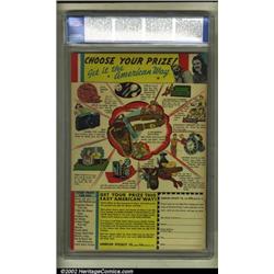 Famous Funnies #100 (Eastern Color, 1942) CGC NM- 9.2 Cream to off-white pages. Here is the very first comic book title to ever reach #100. The cover is a gallery of most of the famous starring characters, including Buck Rogers. This extremely high-grade book is a real gem. The spine is perfect, the corners are sharp, and the entire book is very clean. Overstreet 2002 NM 9.4 value = $135. Important notice: We expect to be auctioning lots at the rate of 200-250 per hour. Sometimes eBay Premier live bid software cannot keep up with that pace, so we strongly recommend that you place a realistic proxy bid now as insurance to avoid disappointment. Also please note that all Heritage/CAA lots purchased through eBay Premier carry a 20% Buyer's Premium.