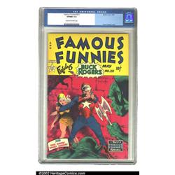 Famous Funnies #211 (Eastern Color, 1954) CGC VF/NM 9.0 Cream to off-white pages. This beautiful copy features a fantastic cover by the master of pen and ink, Frank Frazetta. His covers for Famous Funnies are regarded by many to be the best ever done for the medium. Don't miss the opportunity to own one of the nicest copies to be presented for sale. Overstreet 2002 VF 8.0 value = $712; NM 9.4 value = 1,200. Important notice: We expect to be auctioning lots at the rate of 200-250 per hour. Sometimes eBay Premier live bid software cannot keep up with that pace, so we strongly recommend that you place a realistic proxy bid now as insurance to avoid disappointment. Also please note that all Heritage/CAA lots purchased through eBay Premier carry a 20% Buyer's Premium. Please make sure you read the Terms and Conditions.
