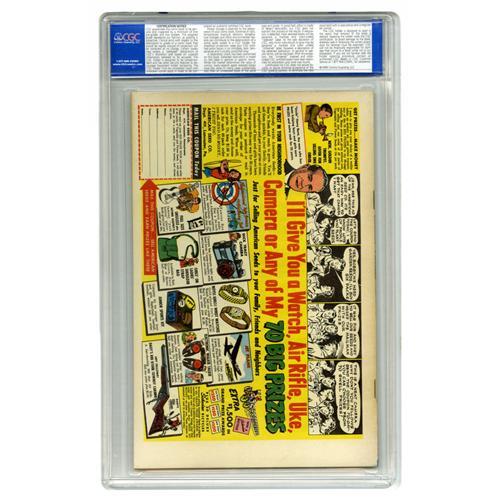 are sold ³as is² without any express or implied warranty. Certain warranties may be available from the grading services and the Bidder is referred to them for further details: Comics Guaranty Corporation (CGC), P.O. Box 4738, Sarasota, FL 34230. Subject to sections 57 and 58, bidders who intend to challenge authenticity or provenance of a lot must notify Auctioneer in writing within thirty (30) days of the Auction¹s conclusion. Auctioneer¹s maximum liability shall not exceed the high bid on that lot, which bid shall be deemed for all purposes the value of the lot. In the event Auctioneer cannot deliver the lot or subsequently it is established that the lot lacks title, provenance, authenticity, or other transfer or condition issue is claimed, Auctioneer¹s liability shall be limited to recission of sale and refund of purchase price. After one year has elapsed, Auctioneer¹s maximum liability shall be limited to any commissions and fees Auctioneer earned on that lot.