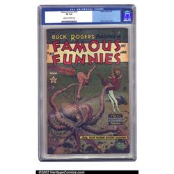Famous Funnies #215 (Eastern Color, 1955) CGC VF 8.0 Cream to off-white pages. The late 1940s and early 1950s featured some outstanding comic book artwork but quite possibly the best was Frank Frazetta, the artist's artist. We are left with too few covers by the master, but that could be said if he had done a thousand. This copy comes within a quarter-grade of being the nicest CGC has yet graded of issue 215. Overstreet 2002 VF 8.0 value = $712. Important notice: We expect to be auctioning lots at the rate of 200-250 per hour. Sometimes eBay Premier live bid software cannot keep up with that pace, so we strongly recommend that you place a realistic proxy bid now as insurance to avoid disappointment. Also please note that all Heritage/CAA lots purchased through eBay Premier carry a 20% Buyer's Premium. Please make sure you read the Terms and Conditions.