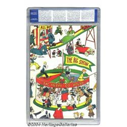<B>Famous Funnies: Carnival of Comics #nn (Eastern Color, 1933) CGC VF+ 8.5 Cream to off-white pages.</B></I> You are looking at the second comic book ever published! This promotional giveaway, a collection of newspaper reprints, was the brainchild of the father of the modern comic book format, M. C. Gaines. An experiment using this freebie turned out to be one of the key moments in the history of comic books: Gaines put price stickers (10ó) on a few copies and arranged to have some newsstands try to sell them. They sold out, providing early proof that demand for the format existed. Of course, the content of the comic was quite desirable, as some of the best-known funnies of the day, including <I>Joe Palooka</B></I>, <I>Mutt and Jeff</B></I>, and <I>Dixie Dugan</B></I>, are inside. Gerber's <B>The Photo-Journal Guide to Comic Books</B></I> lists the comic as "rare. " As for this copy, the condition is amazing considering the book's age -- even a Golden Age book in VF+ is a nice find, and this is from the Platinum Age, five years before <B>Action Comics</B></I> #1 and many years before preserving comics in top condition crossed anyone's mind. There are currently only two unrestored copies of this issue that have been graded higher by CGC. The CGC holder for this comic has a crack at the top right corner. Overstreet 2004 VF 8.0 value = $5,480; VF/NM 9.0 value = $8,740. <BR><BR><B>Important notice:</B> Heritage usually auctions material at the rate of 200-250 lots per hour. On some occasions eBay Live bid software or the Internet may not be able to keep up with the pace of the auction. We recommend placing a realistic absentee bid now as insurance to avoid disappointment. Occasionally the auctioneer may eliminate or reject an eBay Live bid, and the auctioneer may also reopen a lot after the close of the eBay live bidding (usually because we missed an audience bid), and may reject your bid even if it shows you as the winning bidder. By bidding via eBay Live, you agree that Heritage may award the lot to another bidder at its sole discretion under the circumstances described above or any other reasonable circumstances. Since eBay bids are not shown to us until we open the lot on the floor, we treat those bids just like floor bids. In most cases the floor responds before the eBay bid is presented to us, due to Internet lag time, so for consistency we have made it a policy that floor bids are always considered first over tie eBay live bids. Also please note that all Heritage lots purchased through eBay Live carry a 20% Buyer's Premium. Please make sure you read the Terms and Conditions before you bid.