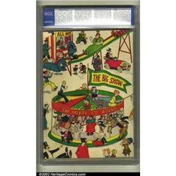 Famous Funnies: Carnival of Comics #nn (Eastern Color, 1933) CGC VF+ 8.5 Off-white to white pages. This scarce premium/giveaway from 1933 is generally considered to be the second comic book ever published; it contains strip reprints of the Bungle Family, Dixie Dugan, Hairbreadth Harry, Joe Palooka, Keeping Up With the Jones, Mutt and Jeff, Reg'lar Fellers, S'Matter Pop, Strange As It Seems, and more. Sold by M.C. Gaines to Wheatena, Milk-O-Malt, John Wanamaker, Kinney Shoe Stores, and others to be given away as premiums and radio giveaways, it was originally distributed in a mailing envelope. This copy may very well be the nicest in existence...it is difficult enough to find a Silver or Bronze Age comic book with a white cover that is still white, let alone one from 1933. The pages are fresh and supple, the spine is strong, the staples are secure, and the colors are very vibrant; this is a very special book. Overstreet 2002 VF 8.0 value = $5,480. Important notice: We expect to be auctioning lots at the rate of 200-250 per hour. Sometimes eBay Premier live bid software cannot keep up with that pace, so we strongly recommend that you place a realistic proxy bid now as insurance to avoid disappointment. Also please note that all Heritage/CAA lots purchased through eBay Premier carry a 20% Buyer's Premium.