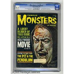 <B>Famous Monsters of Filmland #14 (Warren, 1961) CGC FN- 5.5 Off-white to white pages.</B></I> Make-up artist Dick Smith article and photos. "Pit and the Pendulum" movie preview. Basil Gogos cover. Wendayne Wahrman text. Jerry Weist's <B>Comic Art Price Guide</B></I> lists values of $40 in Good and $125 in Fine condition. CGC census 1/05: 1 in 5.5, none higher.