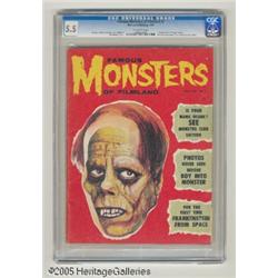 <B>Famous Monsters of Filmland #3 (Warren, 1959) CGC FN- 5.5 Off-white pages.</B></I> "You Axed For It" page begins. Previews of upcoming monster films. Jim Warren cover. Ron Cobb art. Forrest J. Ackerman text. Jerry Weist's <B>Comic Art Price Guide</B></I> lists values of $150 in Good and $300 in Fine condition. CGC census 1/05: 1 in 5.5, 3 higher.