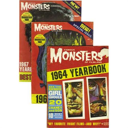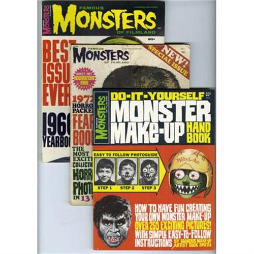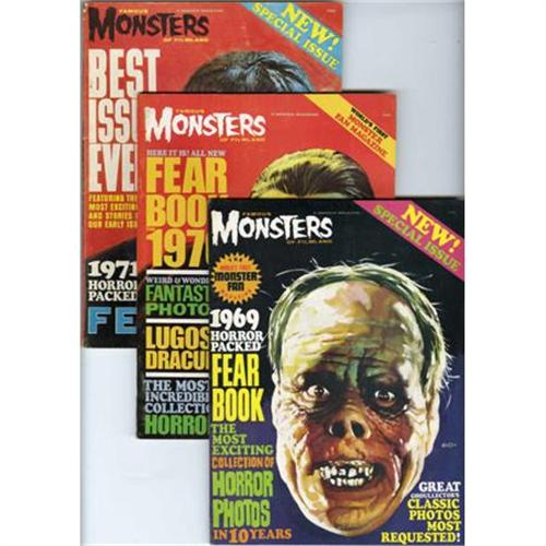 <B>Famous Monsters of Filmland Box Lot (Warren, 1963-79) Condition: Average VG.</B></I> This full short box featuring assorted issues of Forrest J. Ackerman's legendary horror and sci-fi fandom mag includes <B>Famous Monsters </B></I>#22, 24, 27, 34-37, 39, 41, 43-45, 47-50, 53, 54-56, 58-69, 80-123, 125-135, and 153; <B>Famous Monsters Fear Book </B></I>#1964, 1965, 1966, 1967, 1968, 1969, 1970, 1971, and 1972; and the <B>Famous Monsters Do-It-Yourself Monster Make-Up Handbook</B></I>. Approximate Comic Art Price Guide value for group = $1,600.<BR><BR><b>Shipping:</b> Comics Box - Full, Short (<a target="_blank" href="http://www.heritageauctions.com/common/shipping.php">view shipping information</a>)