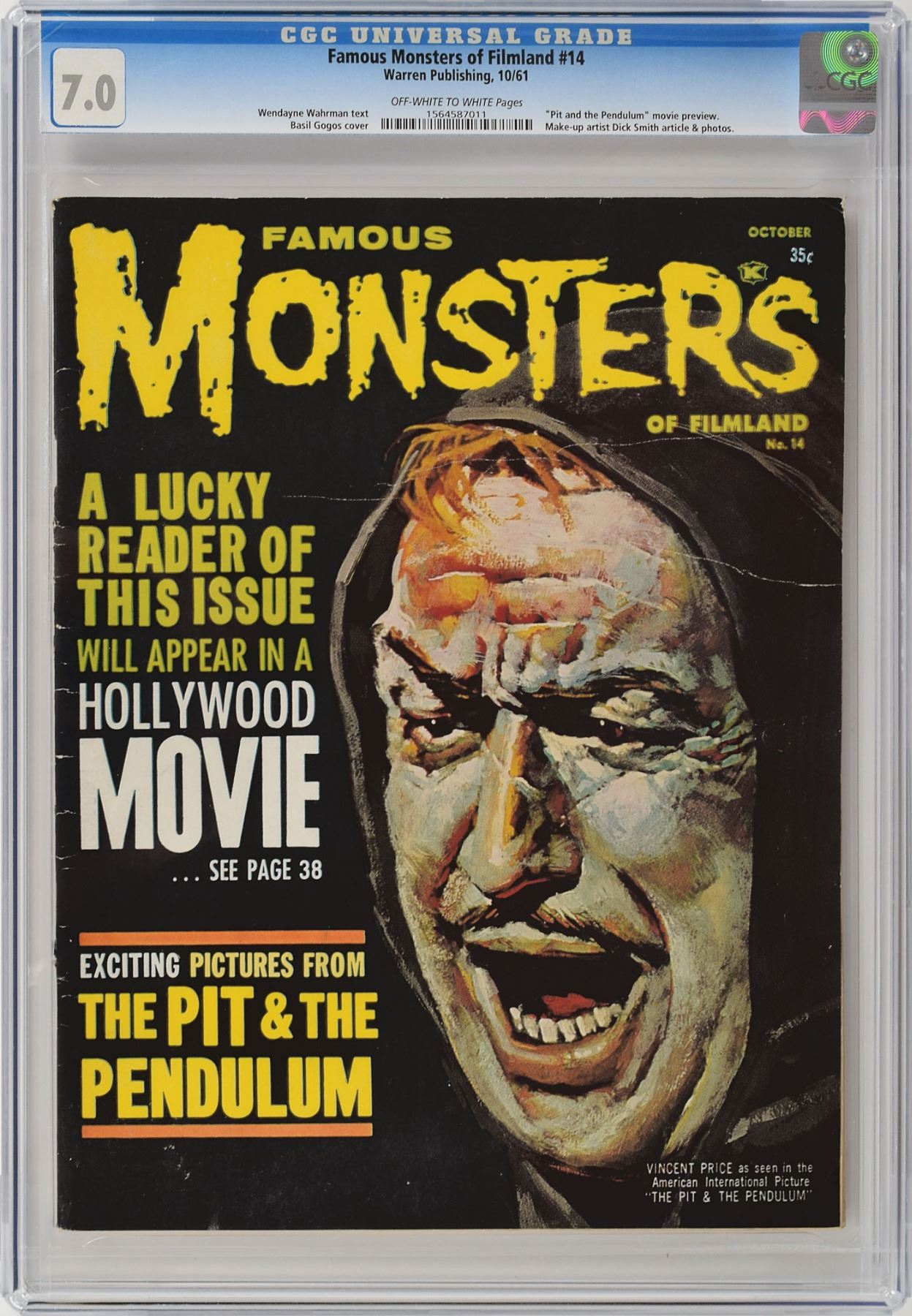 Famous Monsters of Filmland #14, October 1961, featuring Vincent Price in The Pit & the Pendulum (CGC 7)