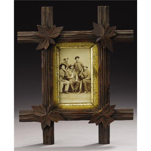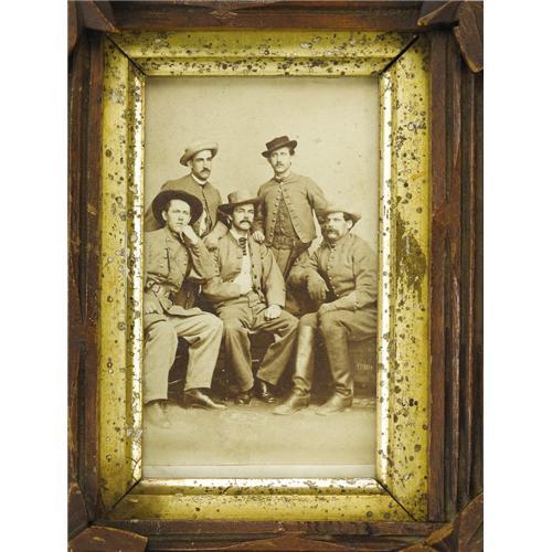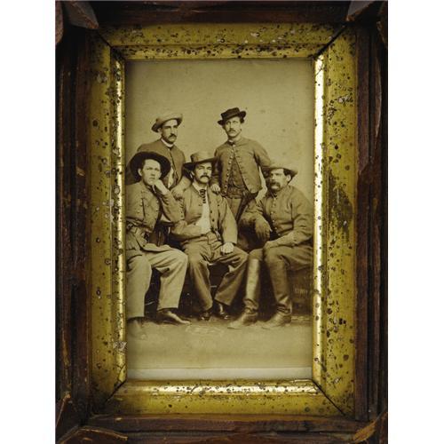 <B>Famous <I>Carte de Visite</B></I></B></I><B> Showing Five of “Mosby's Men”,</B></I> Anderson & Co. backmark, Richmond, Virginia. Mosby's Rangers John Munson, Ben Palmer, Thomas Becker, Walter Gosden and Alexander Babcock are posing here in Confederate uniforms. This image is housed in a period wooden frame having a gilt inner border. The overall framed size is 7.5” x 9”. Very good condition. As the Confederacy's fortunes declined, the popularity of Colonel John Singleton Mosby and his command soared. Consequently, the members of the 43rd Virginia Cavalry Battalion became favorite subjects of various photographers.<BR><BR><B>Provenance:</B></I> <I>The Tharpe Collection of American Military History</B></I><BR><BR><B>Exhibited:</B></I> <I>The Liberty Heritage Society Museum</B></I><BR><BR><b>Shipping:</b> Framed - with Glass, Small (<a target="_blank" href="http://www.heritageauctions.com/common/shipping.php">view shipping information</a>) <BR><BR><B>Important n