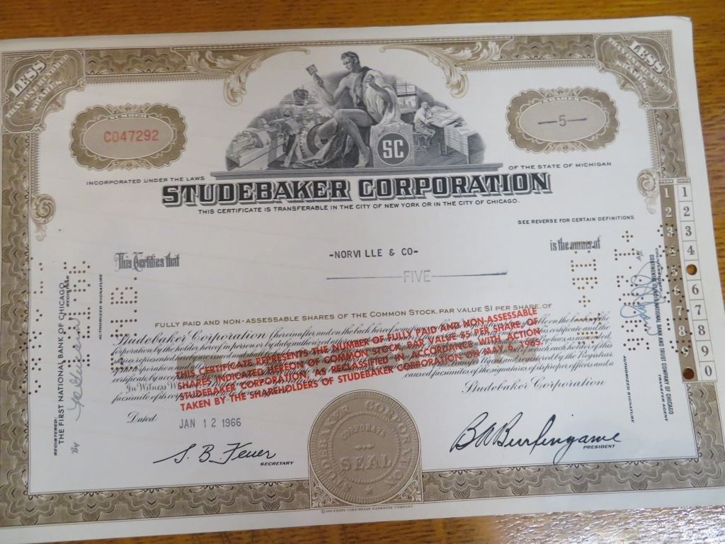 Famous Studebaker Stock Certificate