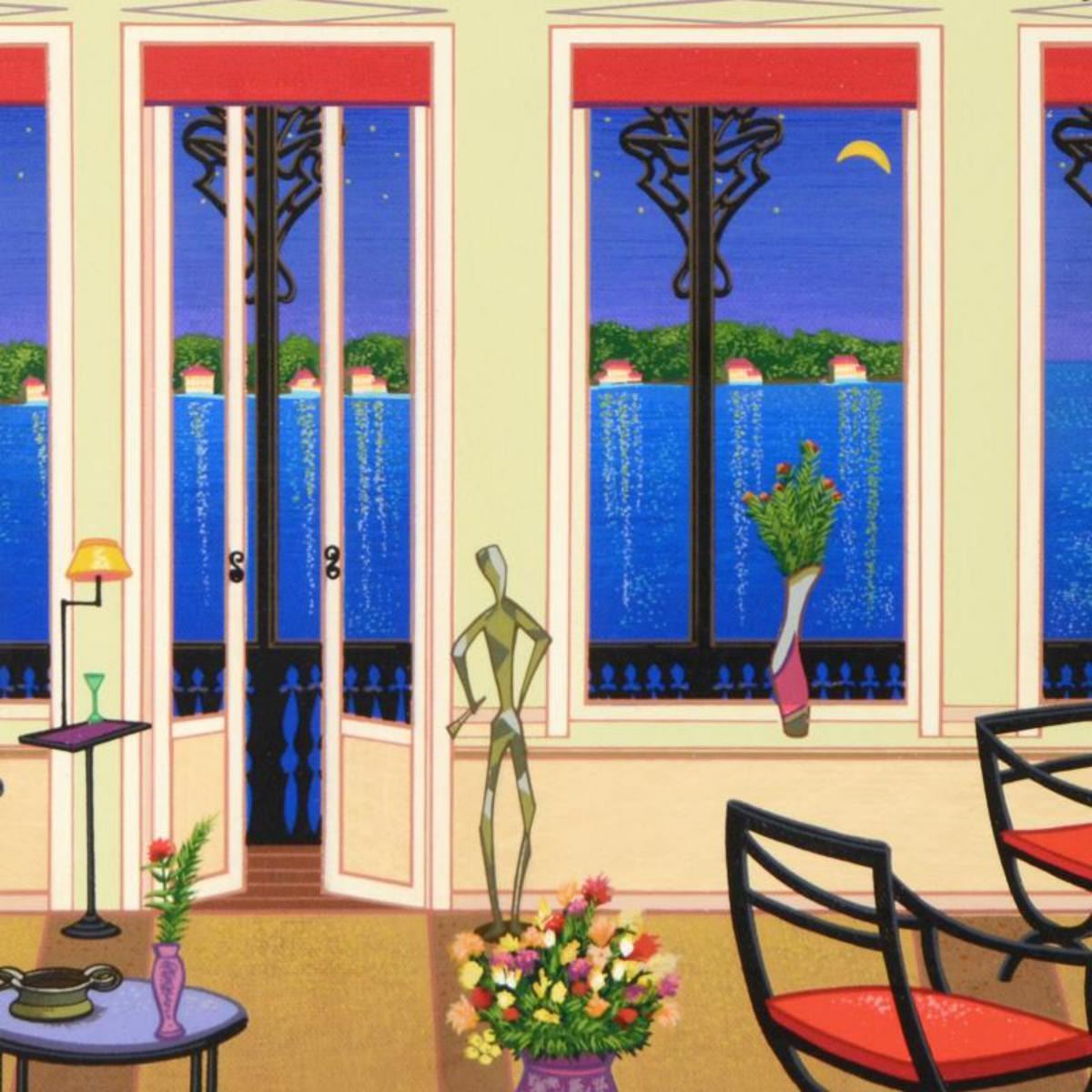 Fanch Ledan, "Balcony Over Bahia" Framed Limited Edition Serigraph on Canvas, Numbered Inverso and H