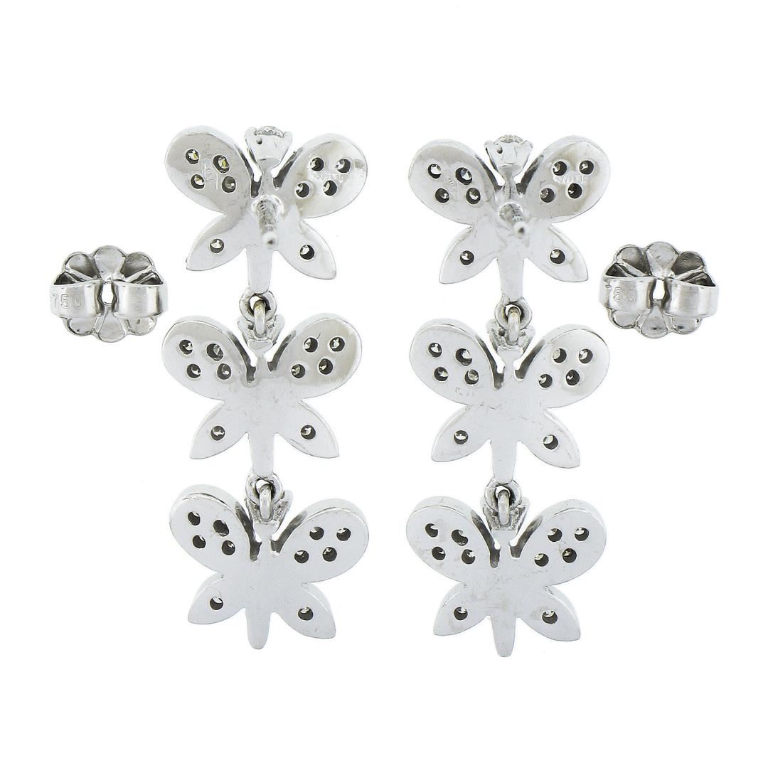 A solid 18k white gold dangle earrings, with 66 round brilliant cut natural diamonds (F/G - VS1-VS2 ; 0.80ctw). The earrings measure approximately 28.4x10.7mm and weigh a total of 7.18 grams.