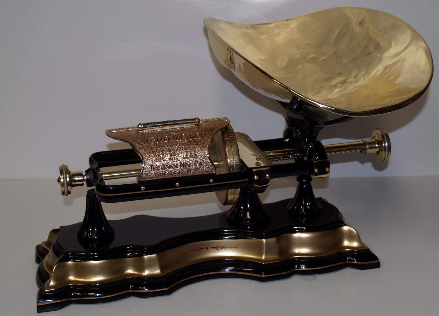 Fancy Based "Micrometer" Scale w/ Pan   This Base design is considered the Rare One  Black & Gold w/ Brass Plating