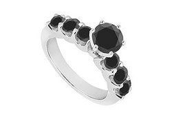 A brilliant-cut round black diamond is prong-set in the center and is accented by three smaller black diamonds on each side. This exquisite fancy black diamond ring is made in 14K white gold & has a total weight (TDW) of 1.90 carat.
