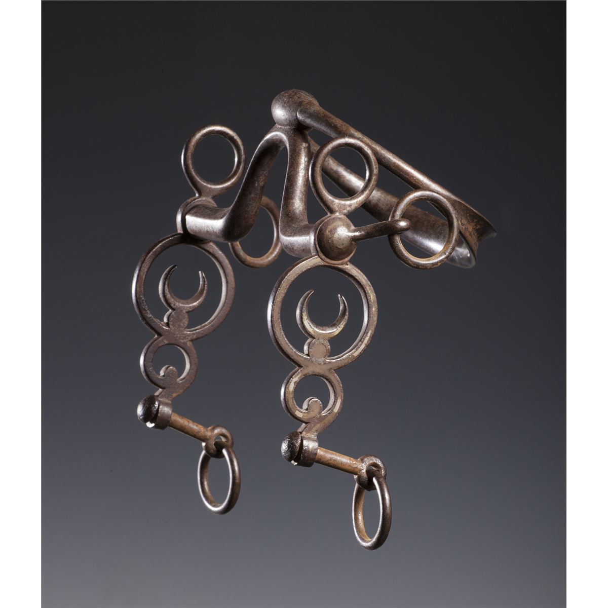 Fancy California Ring Bit. Silver inlay moon in circle with scroll. Solid ring support and rings. A very well-made early example in fine condition.