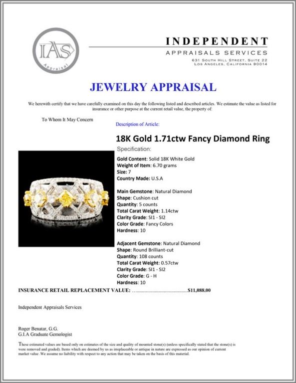 Regarding Appraised Jewelry and Loose Stones - Auctionfarm sends them out to a third party for Retail Replacement Value Appraisals, which are the most common. These types of evaluations are written for insurance needs. This would be the cost to replace the jewelry with an item of equal quality and kind, considered to be the current market price or the replacement value. This type of appraisal is done to protect you in the event of damage or loss of a valuable item. Our appraisals are conducted by independent 3rd Party appraisal firms that utilizes Certified GIA Gemologist. Appraisals should be used for verification of gemstone and/or metal weight, size, and grade only, not actual value. Appraisal value should be considered for insurance purposes only, not actual value, as price varies greatly from retail locations thru out the world. Items should not be purchased with the expectation to resell for appraisal price, or for profit.